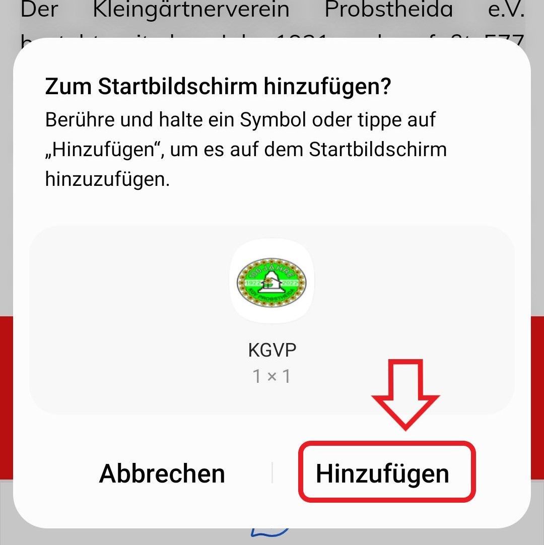 Nach der Installation erscheint ein weiteres Popup indem du gefragt wirst ob das App-Symbol direkt zum Startbildschirm hinzugefügt werden soll. Wenn du das möchtest bestätige es mit einem Druck auf "Hinzufügen".