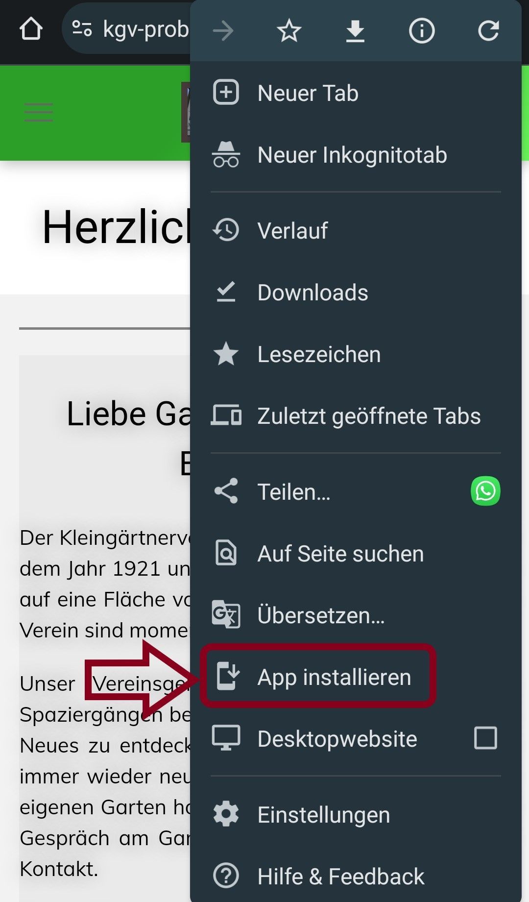 - Wähle in den geöffneten Einstellungen die Funktion "App installieren"